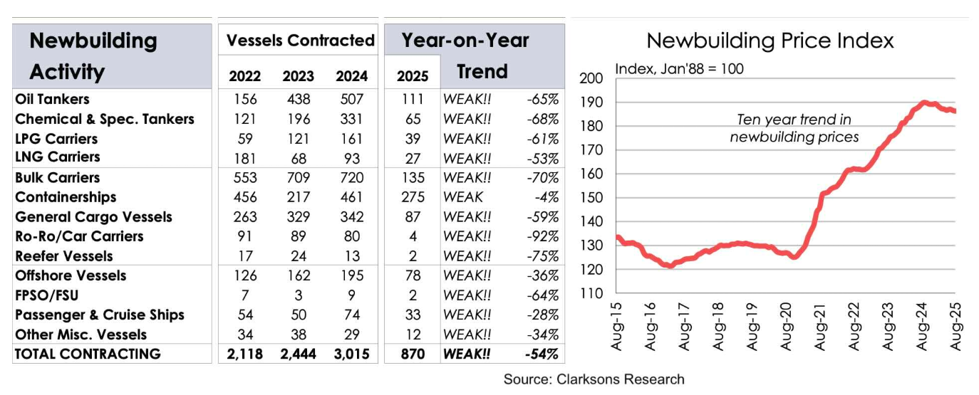 2025年以來,全球散貨船新造船市場明顯降溫,多家經紀機構新訂單數據均出現大幅下降。