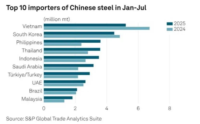 儘管普氏能源資訊相關人士預測,10月中國成品和半成品鋼材出口量或將顯著回落,但全年出口量仍有望超越2024年,創下歷史新高。