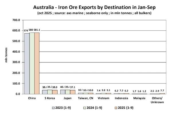 分析認為,中國的輕微回落與國內鋼鐵行業產量調控、庫存週期變化及房地產投資疲軟有關。不過,隨著基建投資支撐下的鋼材需求回暖,中國仍是全球鐵礦石市場最關鍵的買家。
