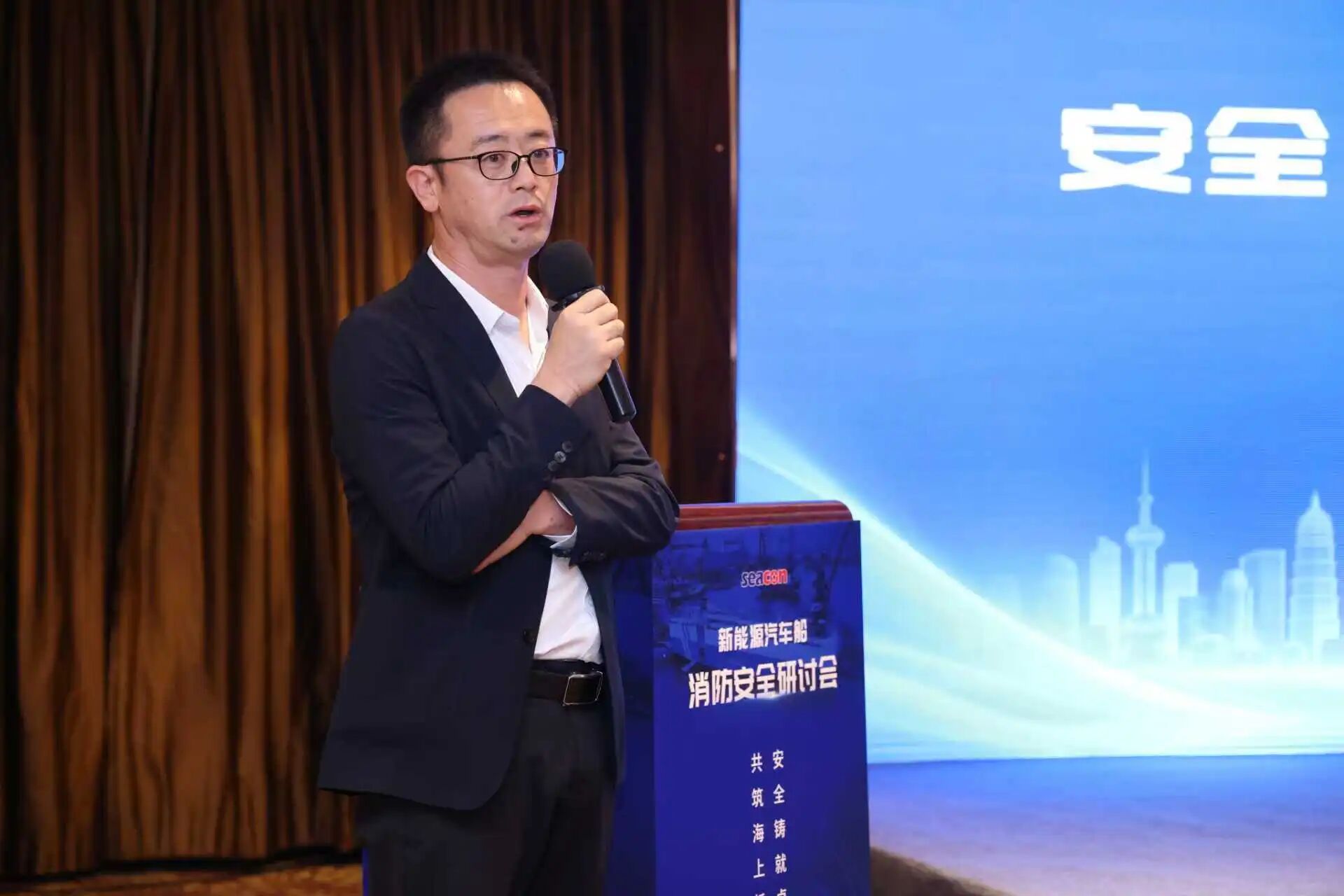 比亚迪集团船舶管理科科长陈伟以制造商兼船东的双重视角分享了对消防安全的思考。他表示,比亚迪“自造自运”的模式让企业更重视安全管理,并强调消防预防的重要性,指出火灾损失往往具有灾难性,防患于未然至关重要。