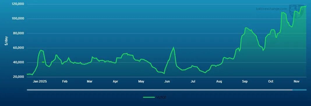 進入2025年四季度,VLCC市場迎來了一輪幾乎席捲全球的強勢上漲行情。從波羅的海交易所的收益曲線、到主流經紀公司的即時成交案例,再到船東財報中所透露的資訊都顯示,VLCC運費正在呈現出“連續加速、全面走強”的趨勢。這波行情不僅推動租金沖向五年來的最高區間,也成為驅動全球船東瘋狂下單VLCC的重要根本原因。