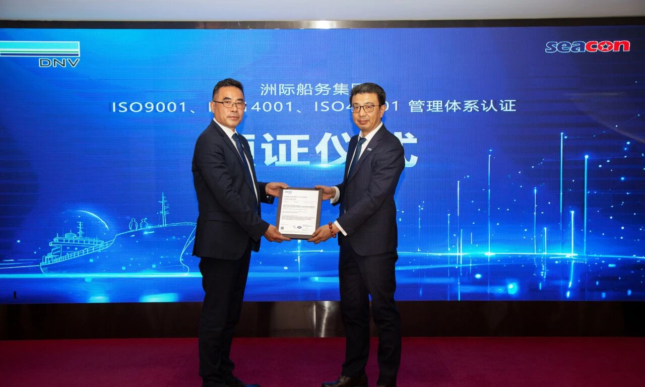 近日,洲際船務集團歷經近三個月全流程、全方位的嚴格審核,成功通過國際權威機構挪威船級社(DNV)ISO 9001品質管理體系、ISO 14001環境管理體系、ISO 45001職業健康安全管理體系認證,正式榮獲三項國際認證證書,標誌著集團在管理規範化、運營標準化、風險可控化領域達到國際先進水準。