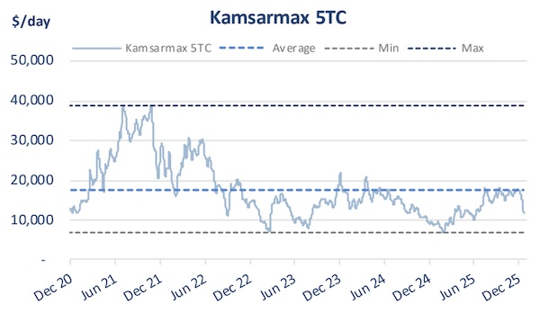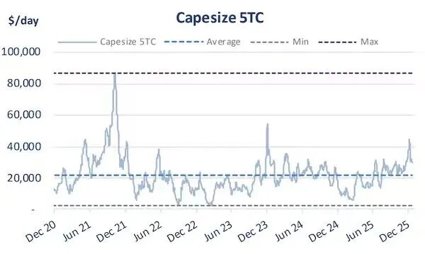 航運經紀商 Xclusiv 最新發佈的周度報告指出,2025年底,幹散貨市場並非依靠需求端的爆發式增長,而是在船舶利用率趨緊、運力節奏錯配以及局部摩擦因素疊加下,將微小的變化轉化為價格的大幅波動。