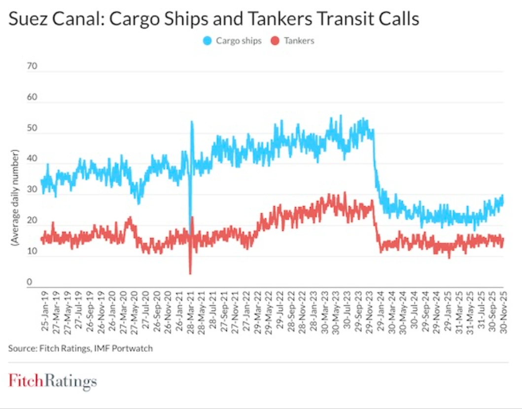 报告同时提及,若伊朗原油运输未来能出现类似的船队切换,将构成潜在的市场上行利好。然而,惠誉也发出警示。苏伊士运河的通航恢复以及全球经济增长疲软,仍是当前运价面临的主要下行风险。
